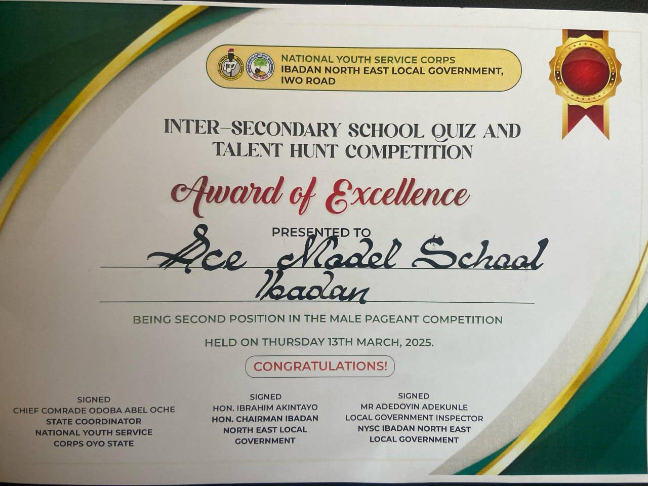 INTER SECONDARY SCHOOL BEAUTY PAGEANT (ACE COLLEGE 2ST POSITION).